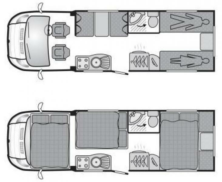 This Motorhome is self contained with flexible sleeping arrangements a fixed double bed over the cab and a dinette and rear lounge that converts into two additional double beds. This vehicle comes fully equipped with a TV, DVD player, cutlery, crockery, fully intergrated kitchen to include oven and grill a luxury washroom with shower and toilet. |